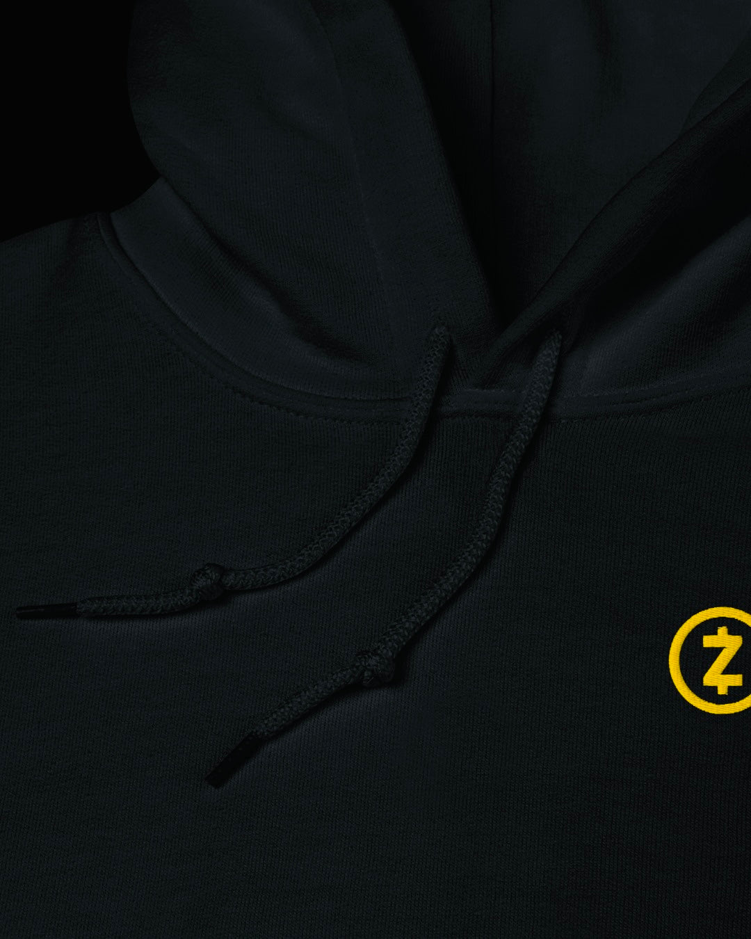 A premium heavyweight hoodie featuring precision-stitched gold Zcash embroidery.